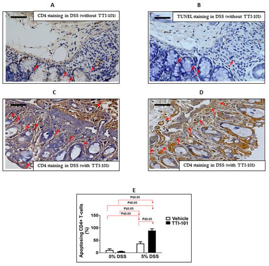 3.2. Effects of TTI-101 Treatment on DSS-Induced Colitis