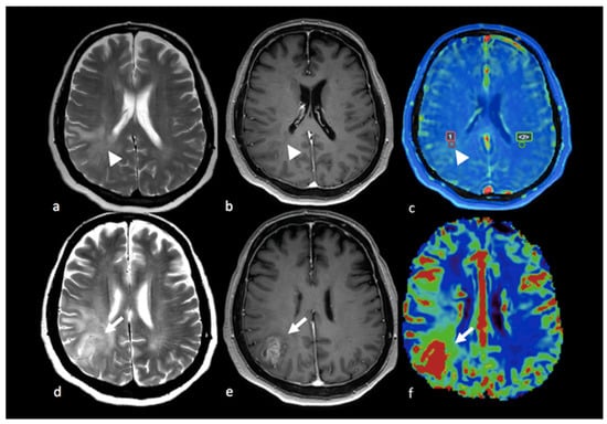 - Hakyemez, B.; Erdogan, C.; Gokalp, G.; Dusak, A.; Parlak, M. Solitary metastases and high-grade gliomas: Radiological differentiation by morphometric analysis and perfusion-weighted MRI. Clin. Radiol. 2010, 65, 15–20. [Google Scholar] [CrossRef]