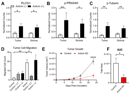 3.6. Activin Co-Localization Is Associated with Increased Activation of PI3K/AKT Signaling to Enhance Tumor Cell Migration and Growth