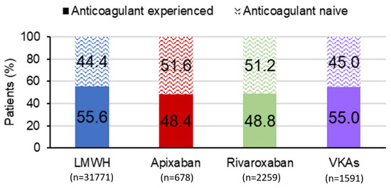 - Cohen, A.; Keshishian, A.; Lee, T.; Wygant, G.; Rosenblatt, L.; Hlavacek, P.; Mardekian, J.; Wiederkehr, D.; Sah, J.; Luo, X. Effectiveness and Safety of Apixaban, Low-Molecular-Weight Heparin, and Warfarin among Venous Thromboembolism Patients with Active Cancer: A U.S. Claims Data Analysis. Thromb. Haemost. 2021, 121, 383–395. [Google Scholar] [CrossRef]