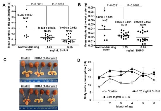 3.2. SHR-5 Drinking Reduces the Weight of Tumor-Bearing Bladders