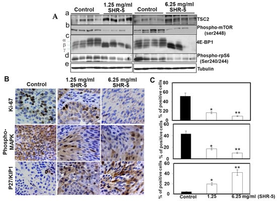 3.5. SHR-5 Drinking Inhibits mTOR Signaling Leading to Reduced Cell Proliferation in the UPII-Mutant Ha-Ras Mice