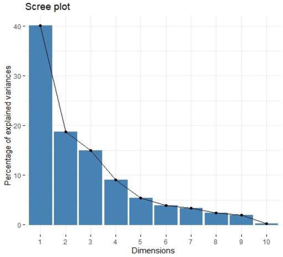 Scree plot of percentage of explained variances for 10 principal components from the PCA for protumour cytokines.