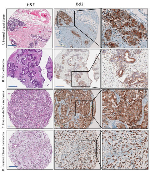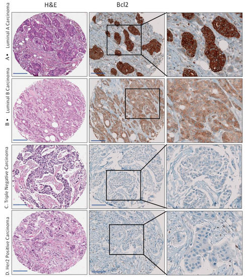 - Eom, Y.H.; Kim, H.S.; Lee, A.; Song, B.J.; Chae, B.J. BCL2 as a Subtype-Specific Prognostic Marker for Breast Cancer. J. Breast Cancer 2016, 19, 252–260. [Google Scholar] [CrossRef]
