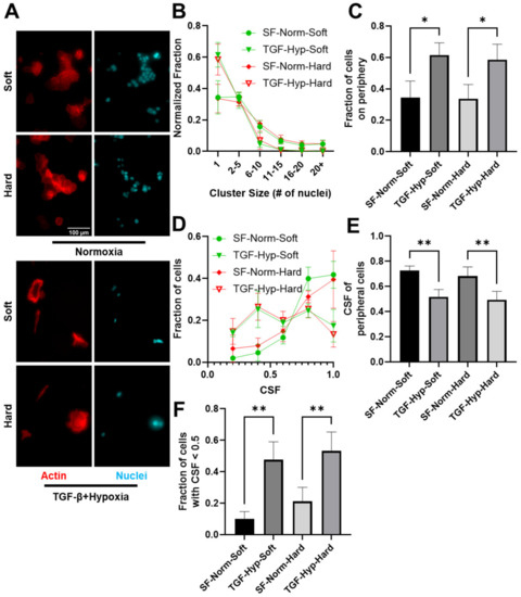 Chicago/Turabian StyleGhosh, Deepraj, Jeffrey Hsu, Kylen Soriano, Carolina Mejia Peña, Amy H. Lee, Don S. Dizon, and Michelle R. Dawson. 2023. "Spatial Heterogeneity in Cytoskeletal Mechanics Response to TGF-β1 and Hypoxia Mediates Partial Epithelial-to-Mesenchymal Transition in Epithelial Ovarian Cancer Cells" Cancers 15, no. 12: 3186. https://doi.org/10.3390/cancers15123186