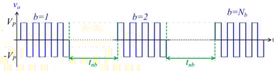 Image of high frequency burst waveform. b = burst number; Nb = total number of bursts; Vp = set voltage; tnb = interburst delay.