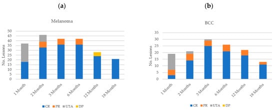 Lesion response according to histological subtype: (a) melanoma; (b) basal cell carcinoma (BCC).