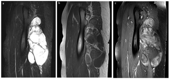 - Navarro, O.M.; Laffan, E.E.; Ngan, B.Y. Pediatric soft-tissue tumors and pseudo-tumors: MR imaging features with pathologic correlation: Part 1. Imaging approach, pseudotumors, vascular lesions, and adipocytic tumors. Radiographics 2009, 29, 887–906. [Google Scholar] [CrossRef]