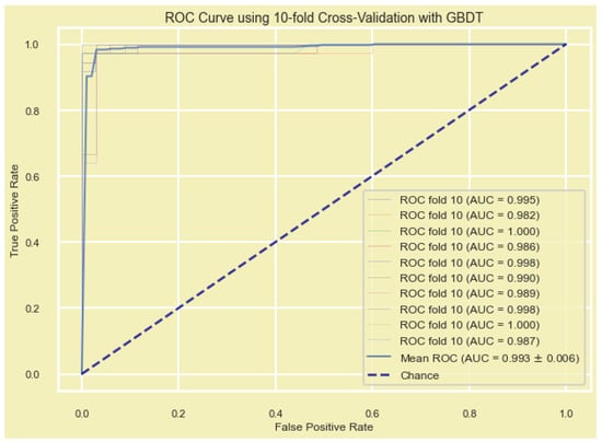 In addition, the model’s performance was evaluated by plotting the receiver operating characteristic curve (ROC) and the area under the ROC (AUC), which is a metric used to measure the model’s effectiveness. Models with larger AUCs are considered to have higher performance.