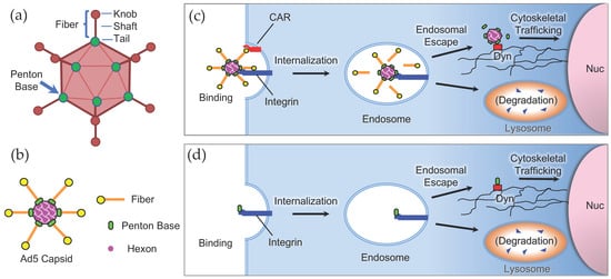 - Medina-Kauwe, L.K. Development of adenovirus capsid proteins for targeted therapeutic delivery. Ther. Deliv. 2013, 4, 267–277. [Google Scholar] [CrossRef]