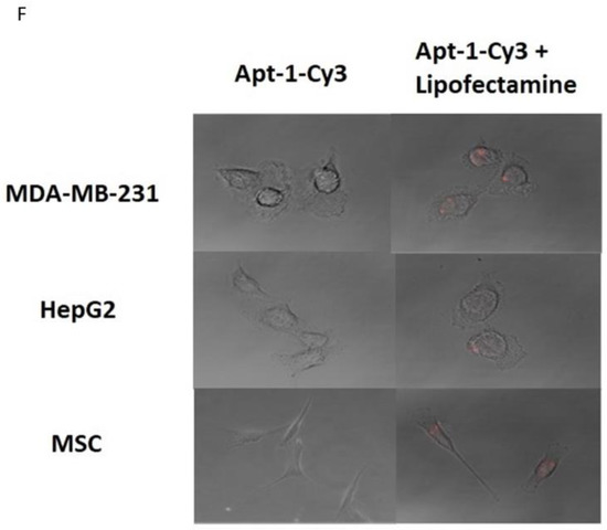 Evaluation of aptamer intracellular uptake: 4 × 105 MDA-MB-231 cells, HepG2 cells, or MSC cells were seeded on 12-well plates to perform transfection with 80 μmol/L Cy3-labeled Adam8 aptamers and OptiMEM medium or with Lipofectamine 2000 packed aptamer and OptiMEM-positive controls. Images were taken at 72 h using a Leica SP2 confocal microscope.