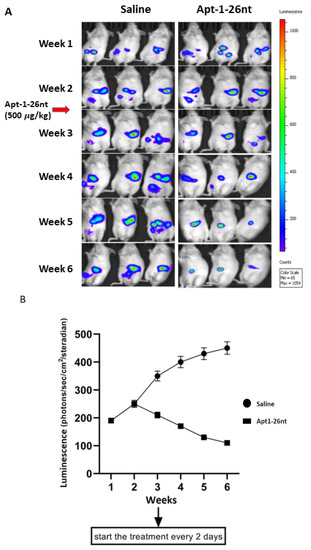 3.4. In Vivo Activity of Apt-1 against Established Tumor