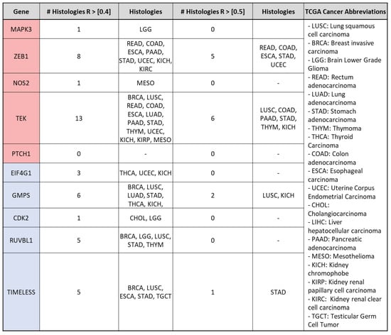 However, the current study has some design limitations. The 760-gene panel used is a limited dataset, however, this selection was deliberate to focus on well-elucidated genes with known functions in cancer to facilitate the further translation of our findings. The under-representation of certain histologies in the TCGA dataset may have led to histology-specific errors and potential missed associations due to a smaller sample size. The initial screening of lead genes by R > {0.3} may appear to be a less stringent threshold, however, this was done only when evaluating the VIP-gene associations across all TCGA histologies and samples. Of note, all R in the initial screen were < {0.4}.