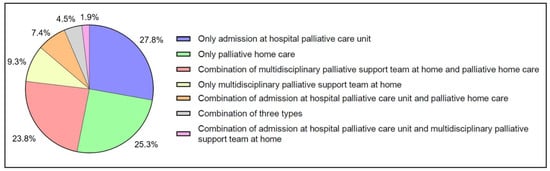 - Penders, Y.W.H.; Gilissen, J.; Moreels, S.; Deliens, L.; Van den Block, L. Palliative care service use by older people: Time trends from a mortality follow-back study between 2005 and 2014. Palliat. Med. 2018, 32, 466–475. [Google Scholar] [CrossRef] [PubMed]