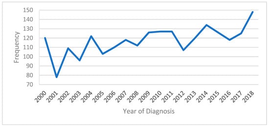 Between 2000 and 2018, the number of yearly diagnosed patients increased overall, except in 2001. (Figure 1).