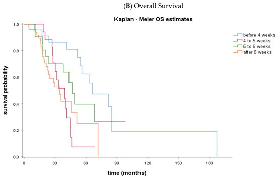 - Median OS was 66.3 months (95% CI: 39.1–93.4) vs. 39.4 months (95% CI: 31.8–47.0) in the <4 week vs. ≥4 week time interval NACT to IDS groups (p = 0.002)