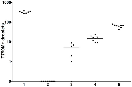 - Karlovich, C.; Goldman, J.W.; Sun, J.M.; Mann, E.; Sequist, L.V.; Konopa, K.; Wen, W.; Angenendt, P.; Horn, L.; Spigel, D.; et al. Assessment of EGFR Mutation Status in Matched Plasma and Tumor Tissue of NSCLC Patients from a Phase I Study of Rociletinib (CO-1686). Clin. Cancer Res. 2016, 22, 2386–2395. [Google Scholar] [CrossRef] [PubMed]