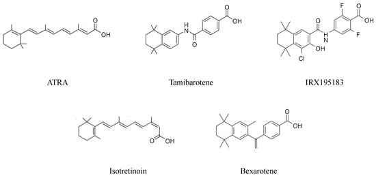 - Liang, C.; Qiao, G.; Liu, Y.; Tian, L.; Hui, N.; Li, J.; Ma, Y.; Li, H.; Zhao, Q.; Cao, W.; et al. Overview of all-trans-retinoic acid (ATRA) and its analogues: Structures, activities, and mechanisms in acute promyelocytic leukaemia. Eur. J. Med. Chem. 2021, 220, 113451. [Google Scholar] [PubMed]
