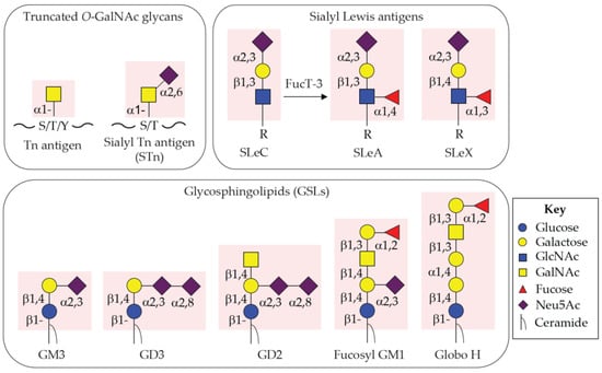 - Cervoni, G.E.; Cheng, J.J.; Stackhouse, K.A.; Heimburg-Molinaro, J.; Cummings, R.D. O-glycan recognition and function in mice and human cancers. Biochem. J. 2020, 477, 1541–1564. [Google Scholar] [CrossRef] [PubMed]