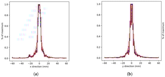 In the case of tissue presence, the X and Y axis profiles were also analyzed and are reported in Figure 5.