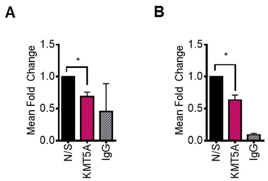LNCaP-AI and LNCaP cells were reverse-transfected with either 25 nM N/S or a pool of 2 KMT5A-targeting siRNAs for 72 h in steroid-depleted media followed by chromatin immunoprecipitation as described by Schmidt et al. [27].