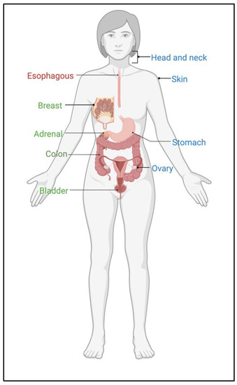 Unexpectedly, other studies report that overexpression of MRN genes/proteins is a marker of good prognosis (Figure 4). In particular, MRN complex expression seems to correlate with good prognosis in ESCC and it is linked to an increased response to neoadjuvant chemotherapy in biopsies taken from patients who underwent treatment with 5-fluorouracil and cisplatin [70]. In muscle-invasive bladder cancer high MRE11 expression is predictive of good response to radiotherapy but not to cystectomy and it is suggested to use MRE11 expression to select patients for radiotherapy or cystectomy [139,140,141]. In left-sided colon and rectal cancer (LSCRC) [142] and CRC [143], strong expression of MRN complex proteins was found related to microsatellite stability (MSS) and better OS. Moreover, low RAD50 expression was associated with worse disease-free survival and OS in early-stage (T1-2) and low-grade (G12) tumors in postoperative rectal samples [137] and poor prognosis in colorectal mucinous (MC) patients [144]. Again, in early breast cancer, weak expression of the MRN complex correlates with high histologic grade, estrogen receptor negativity, and poor survival [130,145].