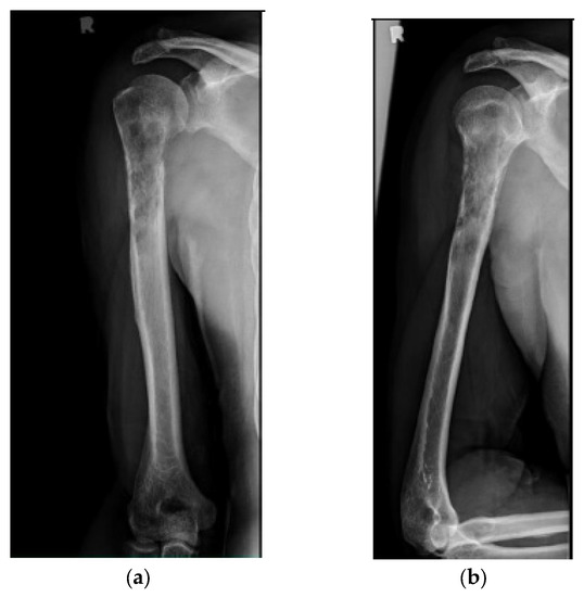 - Flemming, J.; Beals, R. Pathologic Fracture of the Humerus. Clin. Orthop. Relat. Res. 1986, 203, 258–260. [Google Scholar] [CrossRef]