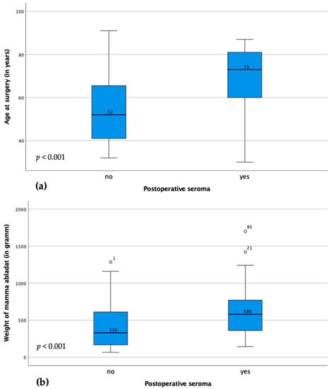 3.2. Correlation between Clinicopathological Parameters and Seroma Formation