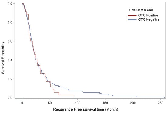 These results could also be partly attributed to the follow-up period being shorter than sixty months as there could certainly be later relapses with longer follow-up of this group. One must also consider the possibility that current CTC identification technology might miss some positive cells/events. In any case, almost 60% of our patients who had CTCs had only one CTC detected, yet the comparison between the identification of a single CTC (compared to zero CTCs) was highly significantly associated with relapse, supporting the sensitivity of the assay.