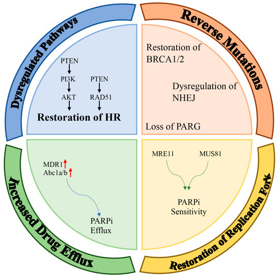 In addition to the success of PARPi in the treatment of cancers with BRCA mutations, the increase in the frequency of use of these drugs in the clinic has revealed the problem of a resistance to PARPi, which became a new therapeutic challenge in cancer treatments. Therefore, understanding the mechanisms of resistance to PARPi is the first step in countering and overcoming resistance. In the following sections, we discuss the mechanisms of resistance to PARPi.