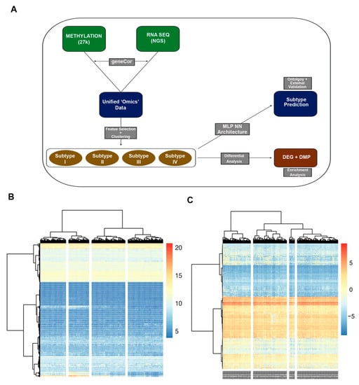 3.1. Unsupervised Clustering Analyses of Integrated DNA Methylation and RNA Sequencing Data