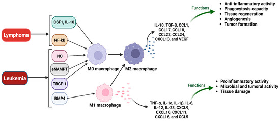 The progression of lymphoma could be supported by macrophages both in classic Hodgkin’s lymphoma (CHL) and non-Hodgkin’s lymphoma (NHL) (Figure 4).