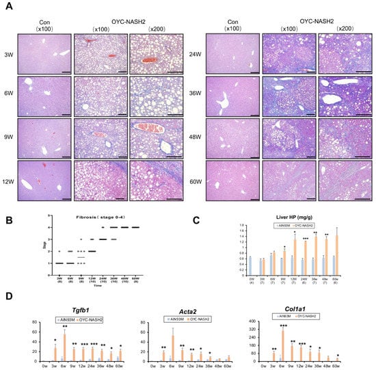 3.3. OYC-NASH2 Diet Induces NASH and Liver Fibrosis at 3 Weeks