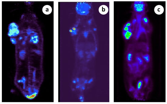Whole-body, micro-PET scanning further confirmed the presence of malignancies in the primary locations and in the distant metastatic lesions, long before our surgical intervention, in all of the animals examined (n = 6). The metastatic load was heavy and was evident even from the 1st wk. after tumor induction (Figure 2a–c).