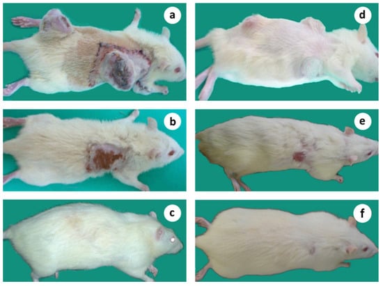 The subjects that survived after the surgical treatment from various groups were followed up for more than a year, having no symptoms or signs of the disease (Figure 8a–c). No toxicity of any kind was observed during that period.