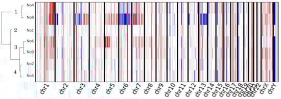 Briefly, the CNVs were analyzed, and heatmap plots were drawn using CNVkit (version 0.9.6) [30]. Data were entered into the CNVkit, and copy number calls were generated for each sample based on the cutoff value for deletions and duplications specified in the settings. The identified CNVs were interpreted according to standard methods, and the data were normalized according to the average depth. The median CNV was used as the cutoff for classifying CNVs in our cohort. The gene copy number gain and loss were indicated by all exons that had a copy number > 0.3 and <−0.3 log2, respectively.