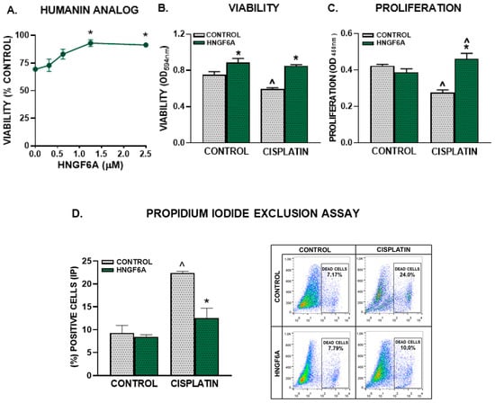Humanin (HN) is a mitochondrial peptide with a potent cytoprotective effect in many cell types. HN can interact with proteins of the Bcl-2 family and inhibit the intrinsic apoptotic pathway [4,5,6,7]. HN can also be released and it has been described to interact with two membrane receptors: a trimetric receptor, composed of ciliary neurotrophic factor receptor (CNTFR), IL27R (WSX-1) and the 130 kDa glycoprotein (gp130) that can trigger the activation of RAS/MAPK, PI3K, JNK and STAT3; or the FPR2 receptor that induces the activation of the extracellular signal-regulated kinase (ERK) pathway [6,8]. Cells can also take up exogenous HN, which rapidly localizes in the mitochondria [9,10]. A robust antiapoptotic effect of HN has been observed in several cell types, i.e., pancreatic β cells, germ cells, neurons, endothelial cells and secretory cells of the anterior pituitary [11,12]. Thus, the administration of HN has been proposed to treat chronic medical conditions, such as diabetes, and neurodegenerative and cardiovascular diseases (US patents 8653027 B2, WO2008153788 A2, US20130123168 A1).