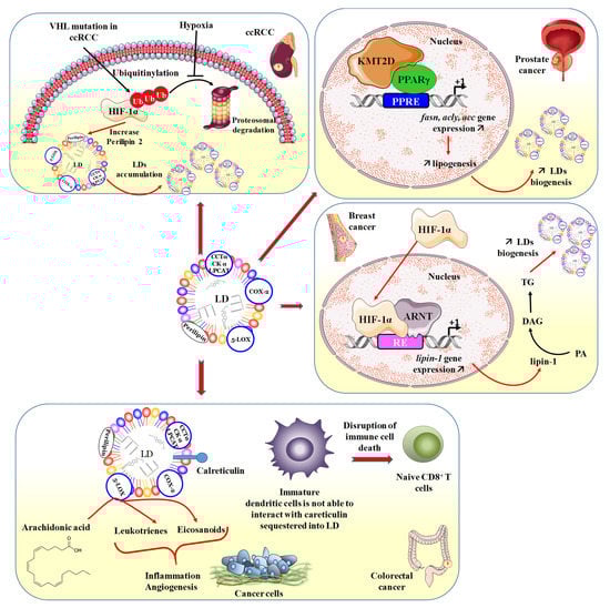 APA StyleDelmas, D., Cotte, A. K., Connat, J.-L., Hermetet, F., Bouyer, F., & Aires, V. (2023). Emergence of Lipid Droplets in the Mechanisms of Carcinogenesis and Therapeutic Responses. Cancers, 15(16), 4100. https://doi.org/10.3390/cancers15164100