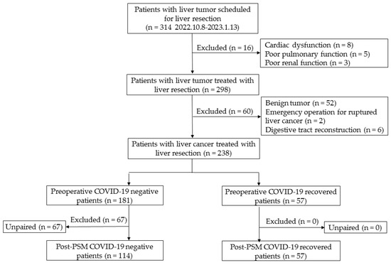 APA StyleWang, Y., Ma, J., Wu, Y., Zhang, S., Li, X., Xia, Y., Yan, Z., Liu, J., Shen, F., & Zhang, X. (2023). Outcomes of Liver Cancer Patients Undergoing Elective Surgery after Recovering from Mild SARS-CoV-2 Omicron Infection: A Retrospective Cohort Study. Cancers, 15(17), 4254. https://doi.org/10.3390/cancers15174254