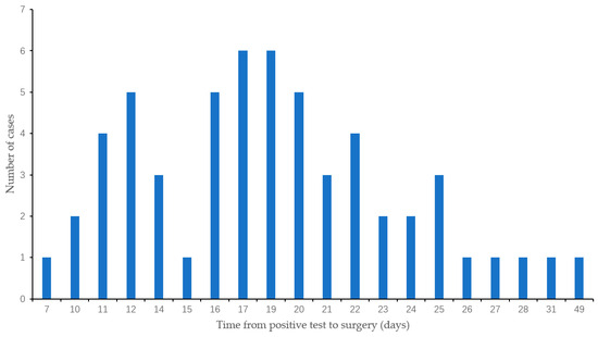 - COVIDSurg Collaborative; GlobalSurg Collaborative; Nepogodiev, D.; Simoes, J.F.; Li, E.; Picciochi, M.; Glasbey, J.C.; Baiocchi, G.; Blanco-Colino, R.; Chaudhry, D.; et al. Timing of surgery following SARS-CoV-2 infection: An international prospective cohort study. Anaesthesia 2021, 76, 748–758. [Google Scholar]