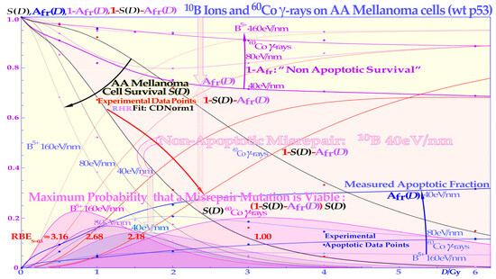 - Brahme, A. Quantifying Cellular Repair, Misrepair and Apoptosis Induced by Boron Ions, Gamma Rays and PRIMA-1 Using the RHR Formulation. Radiat. Res. 2022, 198, 271–296. [Google Scholar] [CrossRef] [PubMed]