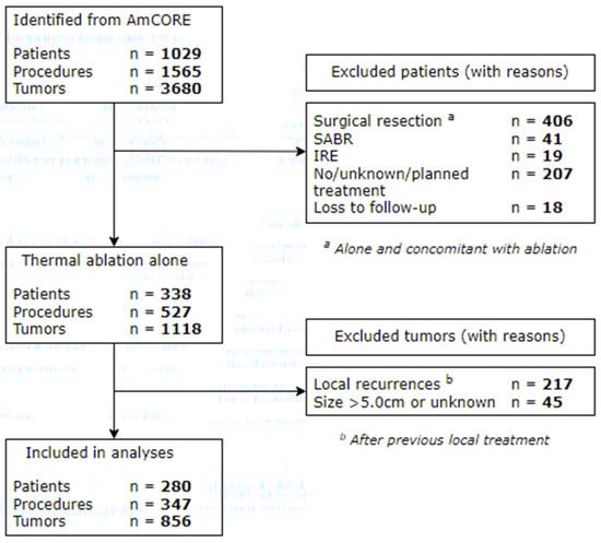 Chicago/Turabian StyleDijkstra, Madelon, Susan van der Lei, Robbert S. Puijk, Hannah H. Schulz, Danielle J. W. Vos, Florentine E. F. Timmer, Hester J. Scheffer, Tineke E. Buffart, M. Petrousjka van den Tol, Birgit I. Lissenberg-Witte, and et al. 2023. "Efficacy of Thermal Ablation for Small-Size (0–3 cm) versus Intermediate-Size (3–5 cm) Colorectal Liver Metastases: Results from the Amsterdam Colorectal Liver Met Registry (AmCORE)" Cancers 15, no. 17: 4346. https://doi.org/10.3390/cancers15174346