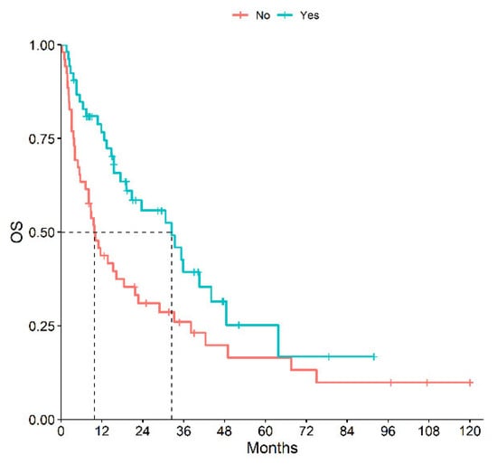 OS of Patients Receiving or Not Immunotherapy during Their History.