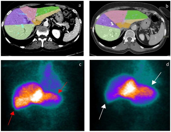 - Sumiyoshi, T.; Shima, Y.; Okabayashi, T.; Noda, Y.; Hata, Y.; Murata, Y.; Kozuki, A.; Tokumaru, T.; Nakamura, T.; Uka, K. Functional discrepancy between two liver lobes after hemilobe biliary drainage in patients with jaundice and bile duct cancer: An appraisal using (99m)Tc-GSA SPECT/CT fusion imaging. Radiology 2014, 273, 444–451. [Google Scholar] [CrossRef]