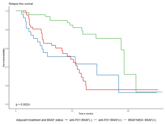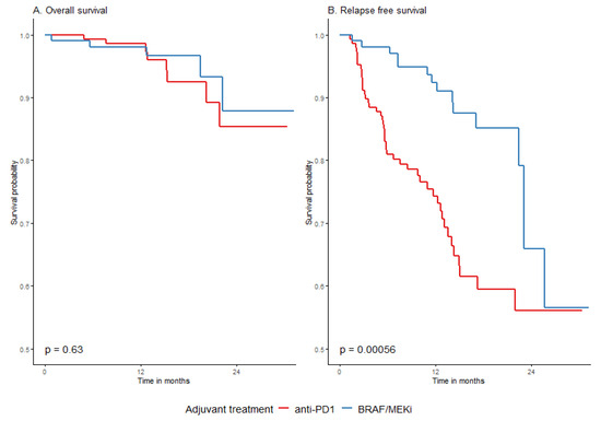 | Class of adjuvant (by time since the beginning of treatment) | Anti-PD1 vs. BRAF/MEKi | 0.0096 | ||||