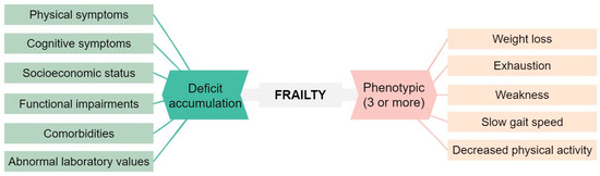 - Fried, L.P.; Tangen, C.M.; Walston, J.; Newman, A.B.; Hirsch, C.; Gottdiener, J.; Seeman, T.; Tracy, R.; Kop, W.J.; Burke, G.; et al. Frailty in older adults: Evidence for a phenotype. J. Gerontol. A Biol. Sci. Med. Sci. 2001, 56, M146–M157. [Google Scholar] [CrossRef] [PubMed]