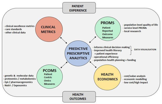 Obviously, the definition of quality in patient outcomes to establish a benchmark as outlined above involves a shear amount of data, which on top has to address data governance, data integration, enabling analytics and data interoperability to share and to encourage collaboration, as well as ethical and legal considerations [11,31,32,33,34,35]. Modern strategies involving AI and ML approaches will revolutionize current approaches [12,33,36,37,38,39]. However, although machine-learning approaches to extract comprehensive data from electronic health records are on the horizon [40], a structured data frame for a given medical condition is necessary, allowing for standardization, interoperability, data analytics, security, transparency, collaboration and further improvements to enable data harmonization over the geography. Above all, real-time follow-up over the entire care cycle, including both clinician and patient perspectives is highly preferable, should be integrated by an interoperable data platform, which ultimately allows federated exchange and learning [41,42,43].