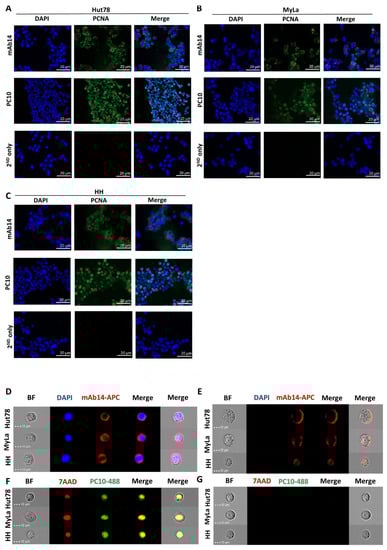 3.1. mAb14 Detects PCNA on the Membrane and in the Cytoplasm of CTCL Cell Lines