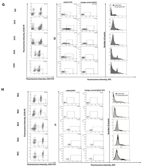 3.4. Viable CD4+CD26−mAb14+ Peripheral Lymphocytes of Patients with Sezary Exhibit Atypical Morphology