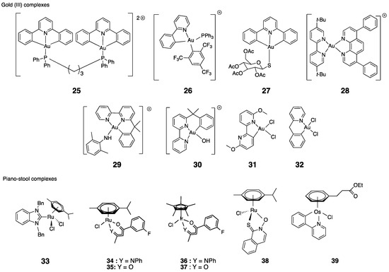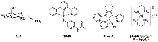 - Berners-Price, S.J.; Barnard, P.J. Therapeutic Gold Compounds; Storr, T., Ed.; Blackwell Science Publ.: Oxford, UK, 2014; pp. 227–256. ISBN 978-1-118-69791-7. [Google Scholar]